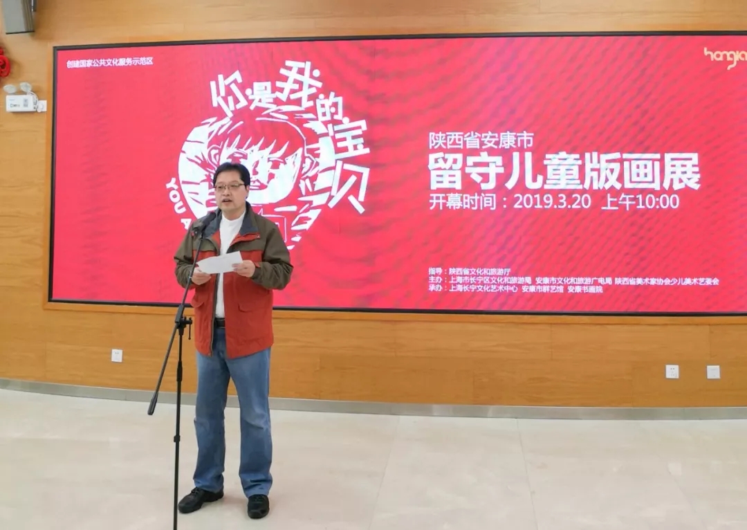 3月20日上午10时,由陕西省文化和旅游厅指导,上海市长宁区文化和旅游局、安康市文化和旅游广电局、陕西省美术家协会少儿美术艺委会主办,上海长宁文化艺术中心、安康市群艺馆、安康书画院承办的“你是我的宝贝”安康市留守儿童版画展在上海市长宁文化艺术中心隆重开展。
